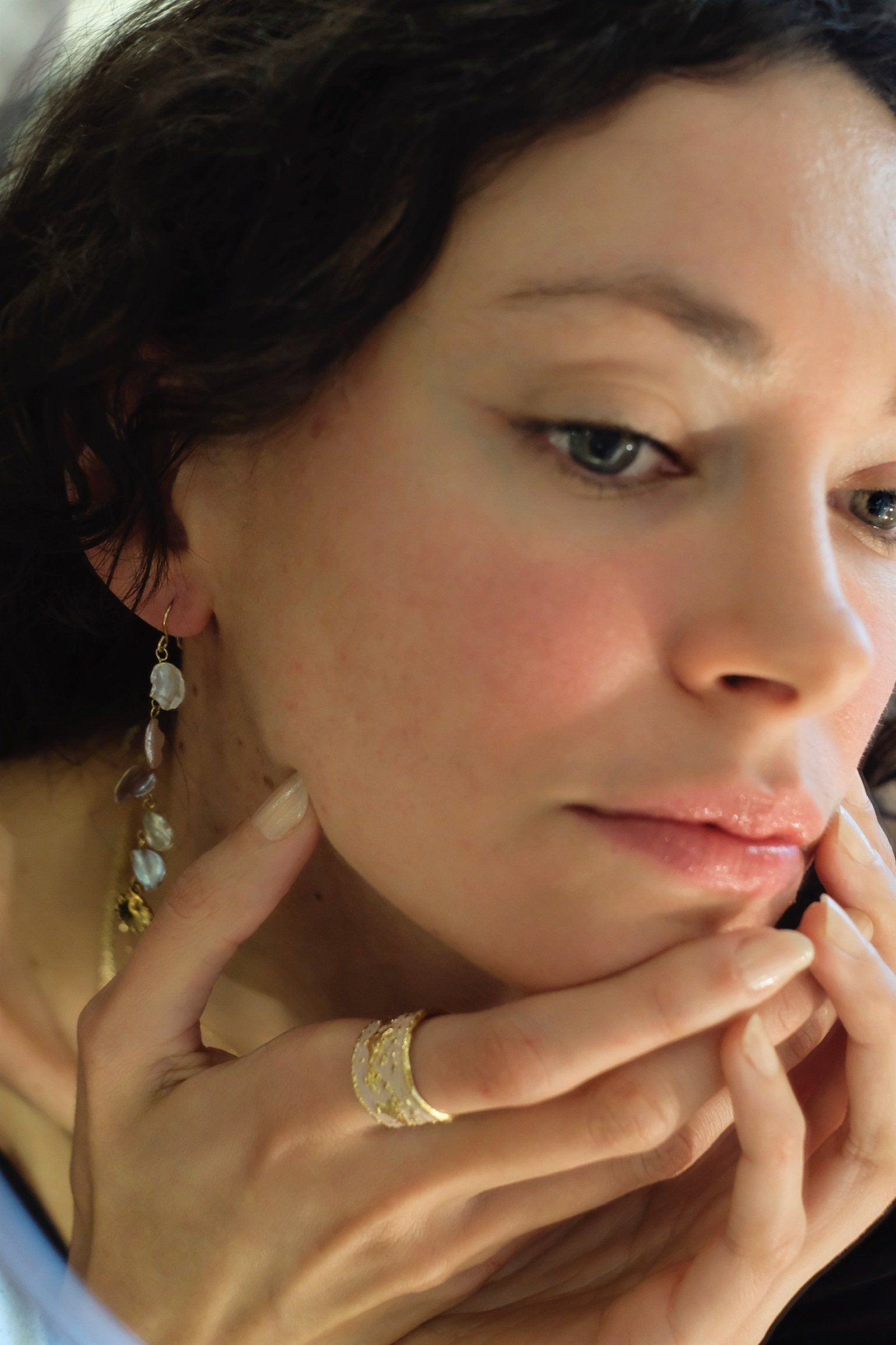 Formée à la Haute École de Joaillerie, Anna-Rivka Allouche façonne à la main des pièces en or et argent, serties de pierres naturelles ou de perles fines.