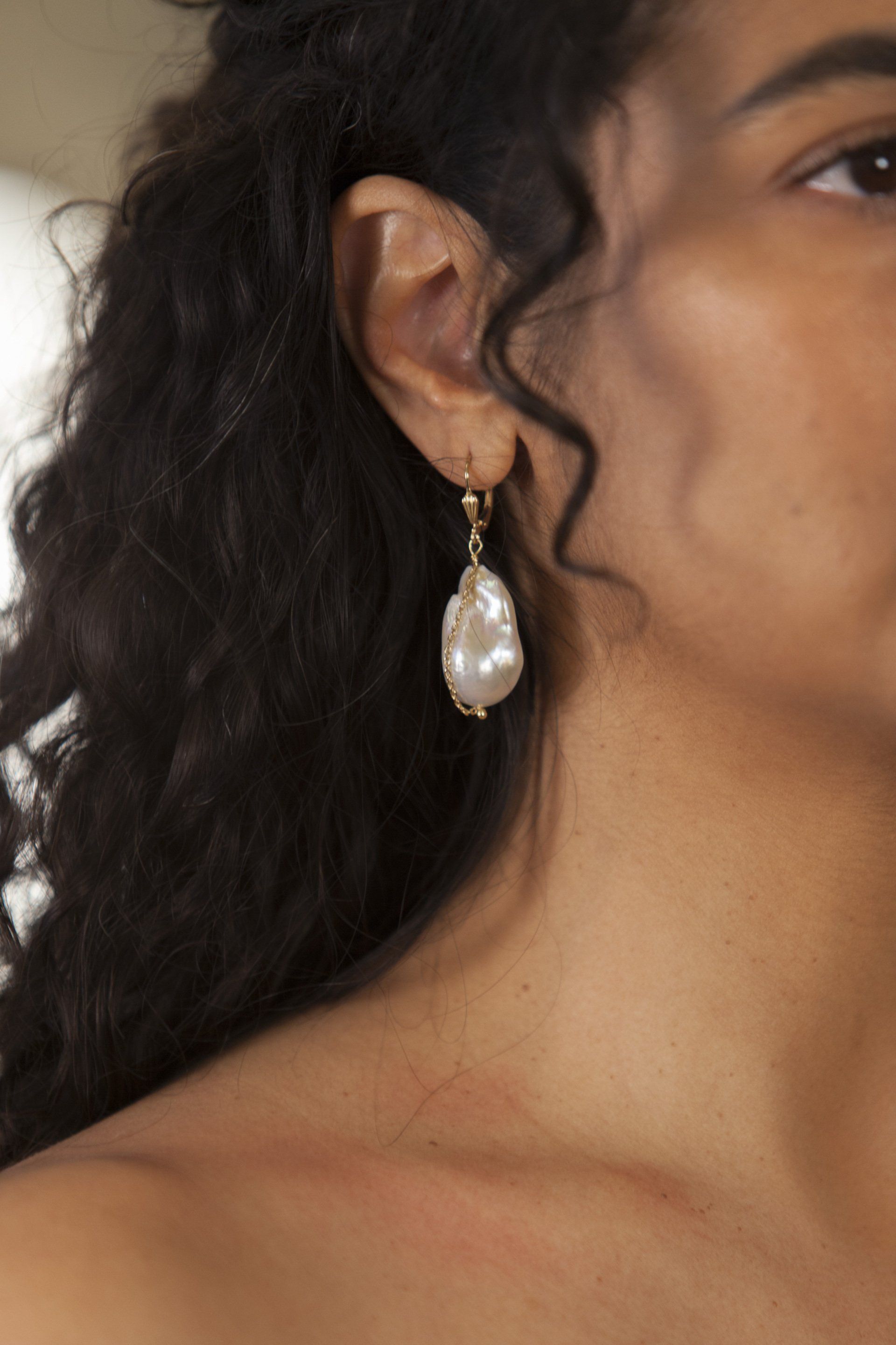 Chaque perle est choisie pour sa forme libre, laissée brute.